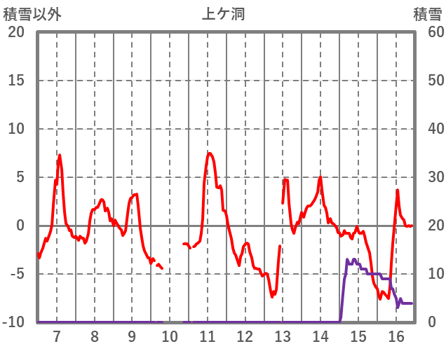 | 日 | 時 | 気温 | 降水 | 風向/風速 | 日照 | 積雪 | 降雪 |
