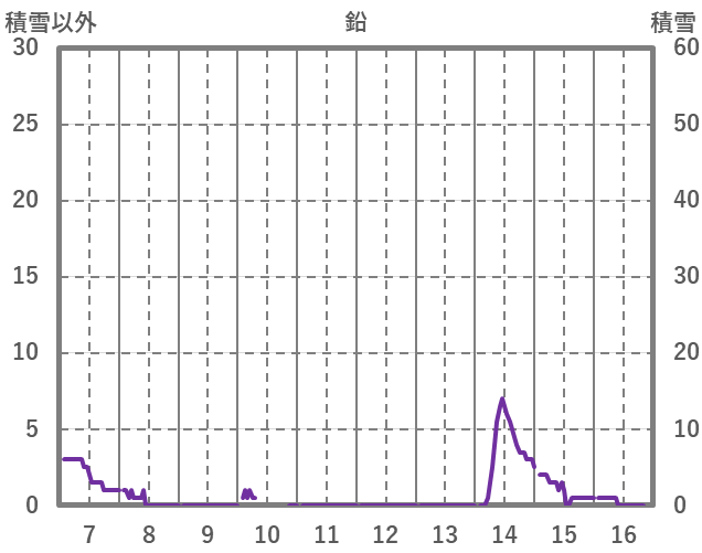 | 日 | 時 | 気温 | 降水 | 風向/風速 | 日照 | 積雪 | 降雪 |