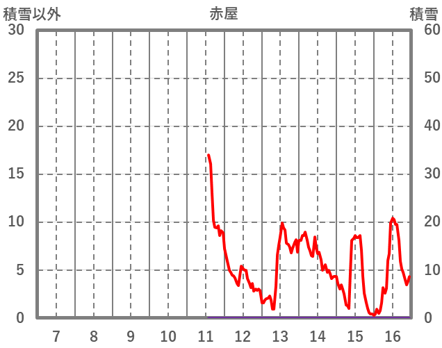 | 日 | 時 | 気温 | 降水 | 風向/風速 | 日照 | 積雪 | 降雪 |