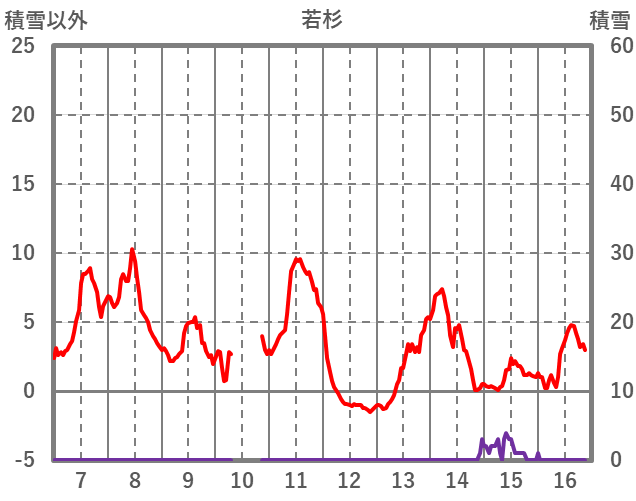 | 日 | 時 | 気温 | 降水 | 風向/風速 | 日照 | 積雪 | 降雪 |