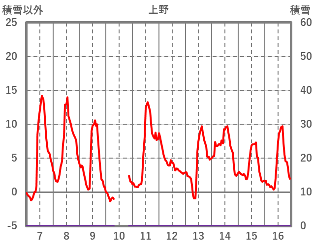 | 日 | 時 | 気温 | 降水 | 風向/風速 | 日照 | 積雪 | 降雪 |