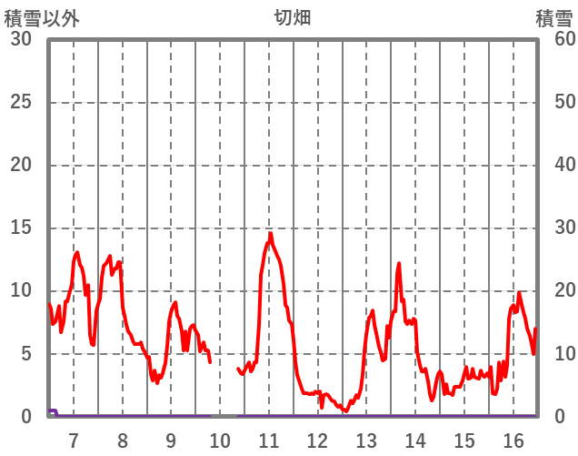 | 日 | 時 | 気温 | 降水 | 風向/風速 | 日照 | 積雪 | 降雪 |