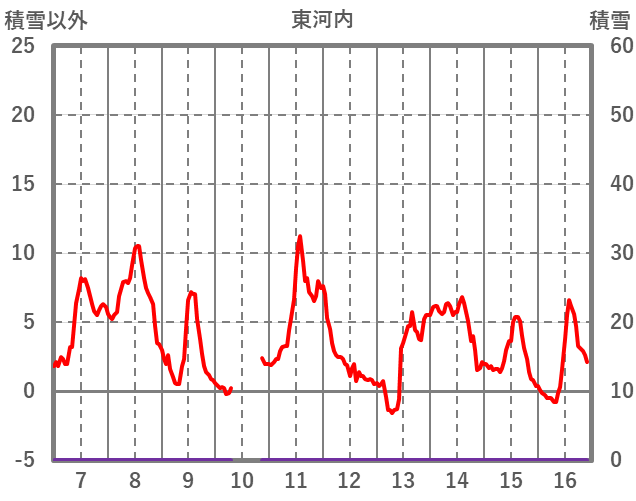 | 日 | 時 | 気温 | 降水 | 風向/風速 | 日照 | 積雪 | 降雪 |