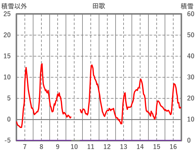 | 日 | 時 | 気温 | 降水 | 風向/風速 | 日照 | 積雪 | 降雪 |