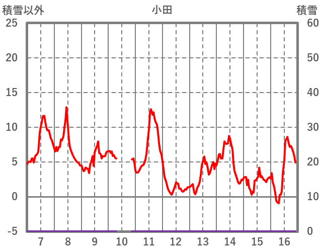 | 日 | 時 | 気温 | 降水 | 風向/風速 | 日照 | 積雪 | 降雪 |