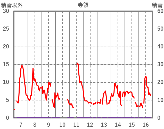 | 日 | 時 | 気温 | 降水 | 風向/風速 | 日照 | 積雪 | 降雪 |