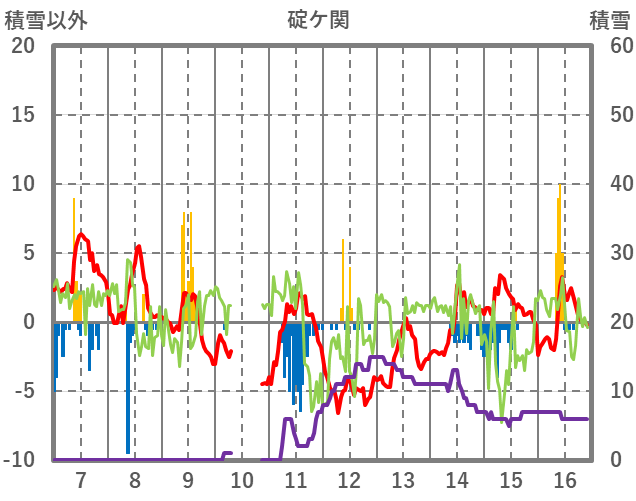 | 日 | 時 | 気温 | 降水 | 風向/風速 | 日照 | 積雪 | 降雪 |