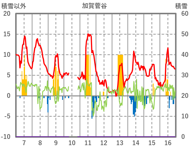 | 日 | 時 | 気温 | 降水 | 風向/風速 | 日照 | 積雪 | 降雪 |