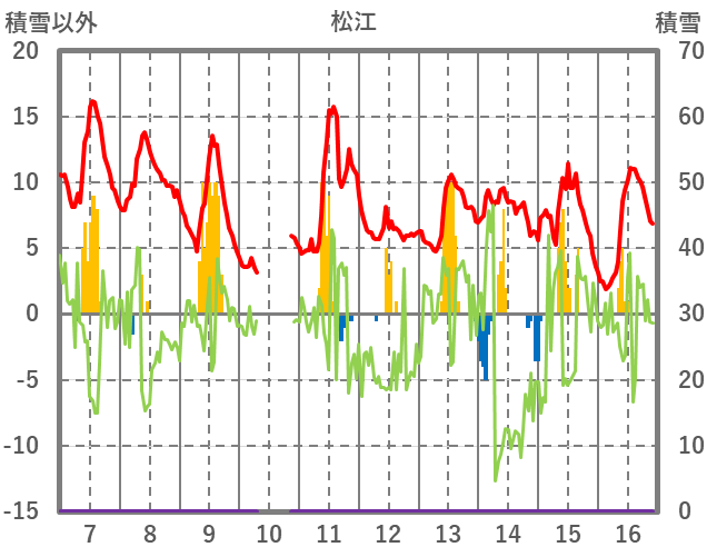 | 日 | 時 | 気温 | 降水 | 風向/風速 | 日照 | 積雪 | 降雪 |