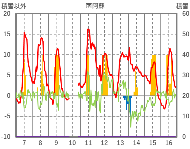| 日 | 時 | 気温 | 降水 | 風向/風速 | 日照 | 積雪 | 降雪 |