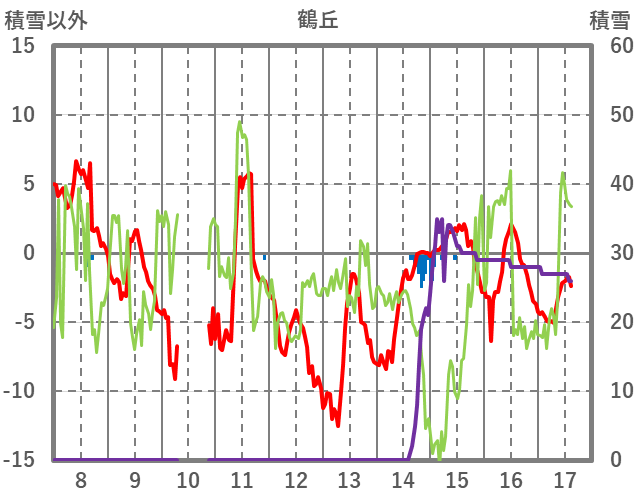 | 日 | 時 | 気温 | 降水 | 風向/風速 | 日照 | 積雪 | 降雪 |