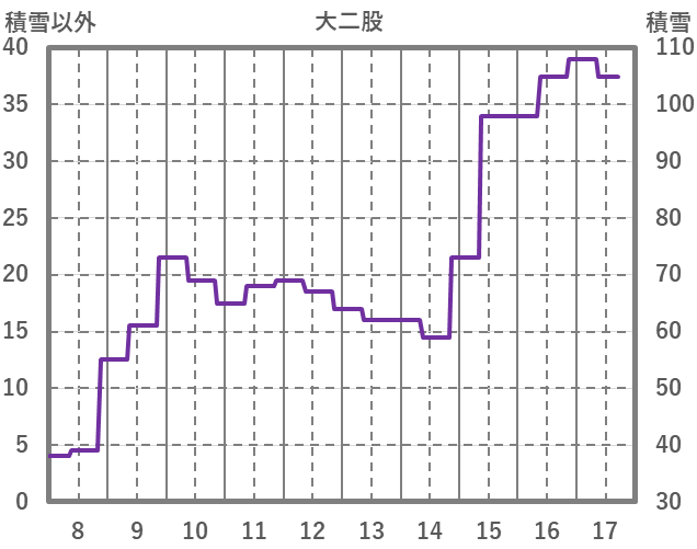 | 日 | 時 | 気温 | 降水 | 風向/風速 | 日照 | 積雪 | 降雪 |