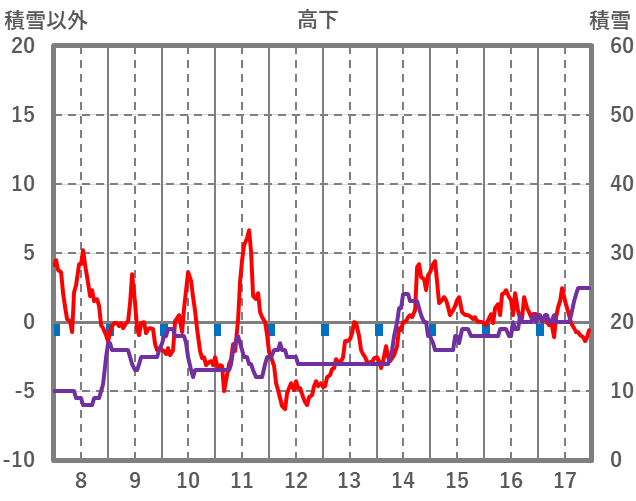 | 日 | 時 | 気温 | 降水 | 風向/風速 | 日照 | 積雪 | 降雪 |