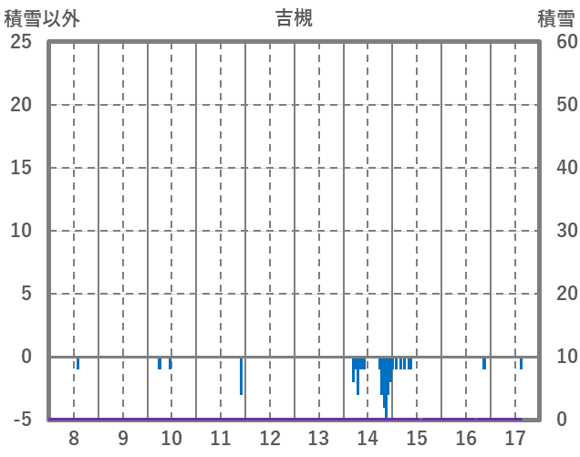 | 日 | 時 | 気温 | 降水 | 風向/風速 | 日照 | 積雪 | 降雪 |