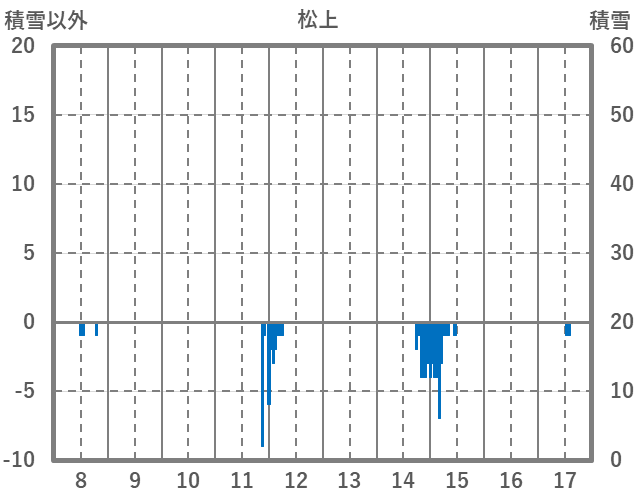 | 日 | 時 | 気温 | 降水 | 風向/風速 | 日照 | 積雪 | 降雪 |