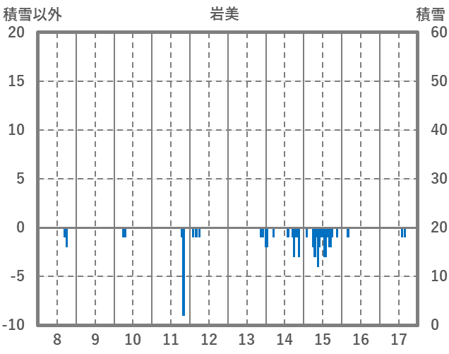 | 日 | 時 | 気温 | 降水 | 風向/風速 | 日照 | 積雪 | 降雪 |