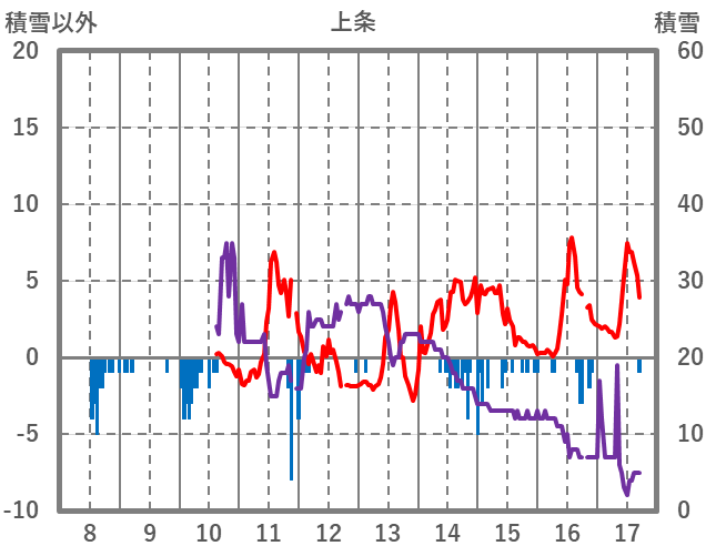 | 日 | 時 | 気温 | 降水 | 風向/風速 | 日照 | 積雪 | 降雪 |