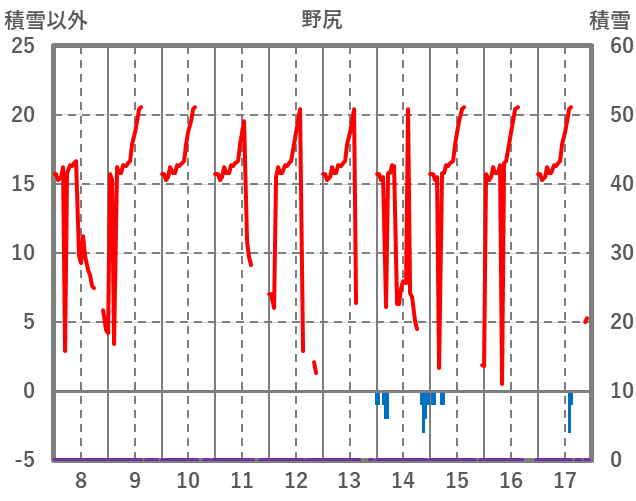 | 日 | 時 | 気温 | 降水 | 風向/風速 | 日照 | 積雪 | 降雪 |