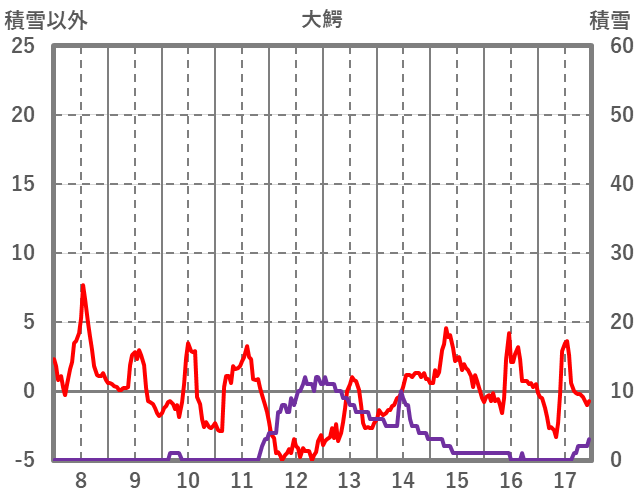 | 日 | 時 | 気温 | 降水 | 風向/風速 | 日照 | 積雪 | 降雪 |