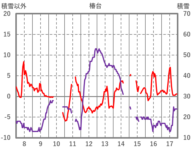 | 日 | 時 | 気温 | 降水 | 風向/風速 | 日照 | 積雪 | 降雪 |