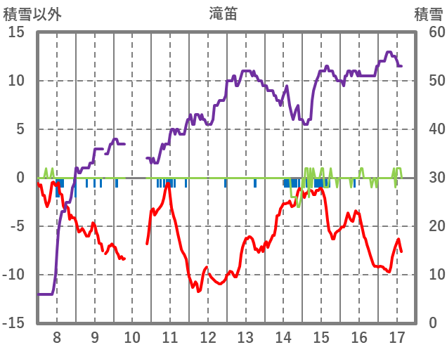 | 日 | 時 | 気温 | 降水 | 風向/風速 | 日照 | 積雪 | 降雪 |
