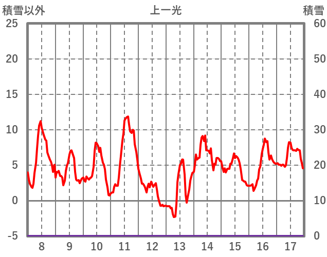 | 日 | 時 | 気温 | 降水 | 風向/風速 | 日照 | 積雪 | 降雪 |