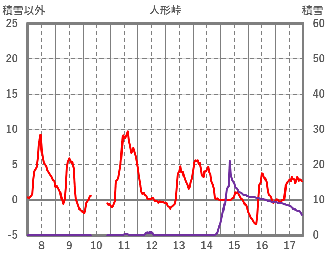 | 日 | 時 | 気温 | 降水 | 風向/風速 | 日照 | 積雪 | 降雪 |