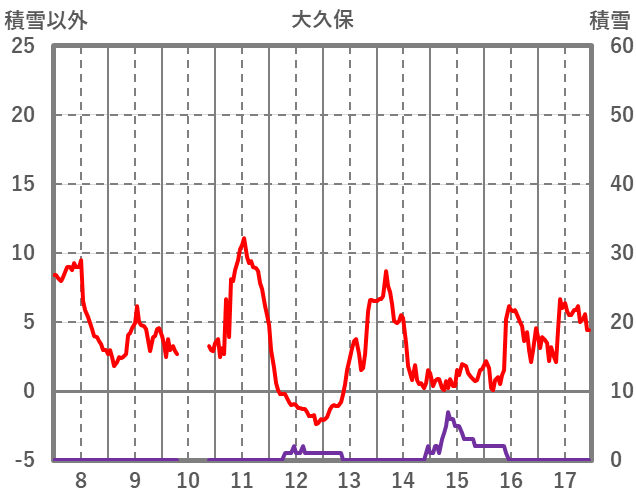 | 日 | 時 | 気温 | 降水 | 風向/風速 | 日照 | 積雪 | 降雪 |