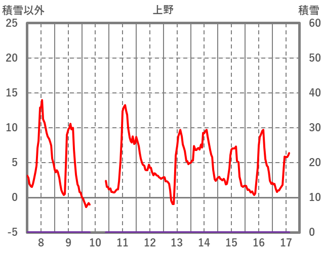 | 日 | 時 | 気温 | 降水 | 風向/風速 | 日照 | 積雪 | 降雪 |