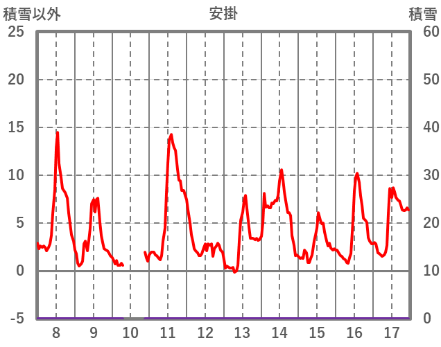 | 日 | 時 | 気温 | 降水 | 風向/風速 | 日照 | 積雪 | 降雪 |