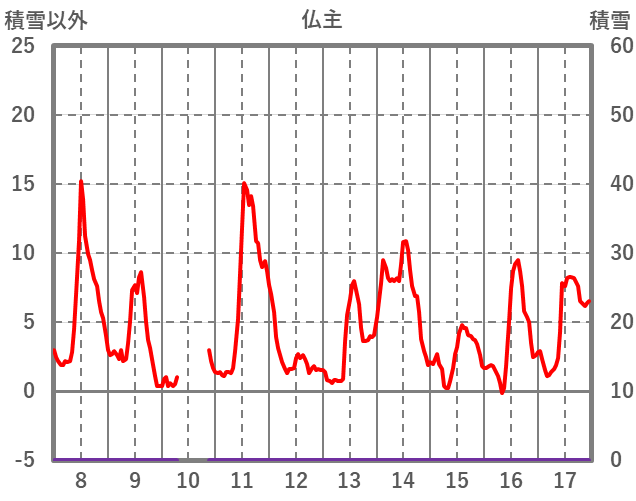 | 日 | 時 | 気温 | 降水 | 風向/風速 | 日照 | 積雪 | 降雪 |