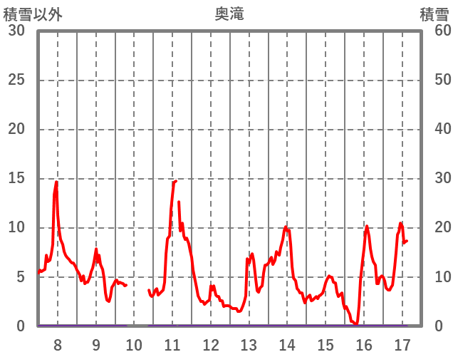 | 日 | 時 | 気温 | 降水 | 風向/風速 | 日照 | 積雪 | 降雪 |