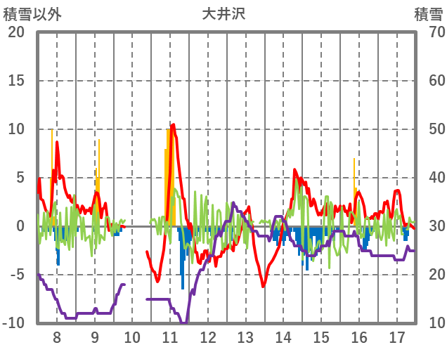 | 日 | 時 | 気温 | 降水 | 風向/風速 | 日照 | 積雪 | 降雪 |
