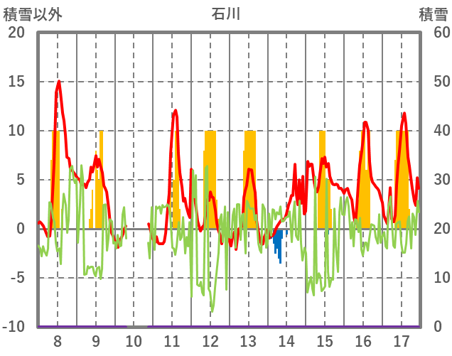 | 日 | 時 | 気温 | 降水 | 風向/風速 | 日照 | 積雪 | 降雪 |