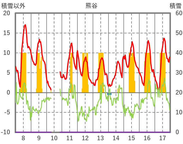 | 日 | 時 | 気温 | 降水 | 風向/風速 | 日照 | 積雪 | 降雪 |