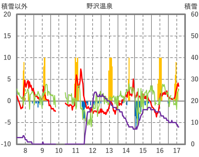 | 日 | 時 | 気温 | 降水 | 風向/風速 | 日照 | 積雪 | 降雪 |