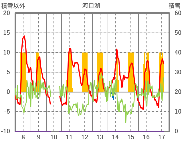 | 日 | 時 | 気温 | 降水 | 風向/風速 | 日照 | 積雪 | 降雪 |
