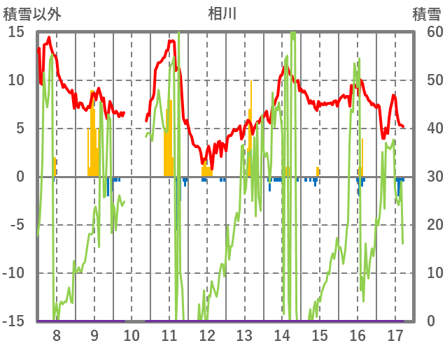 | 日 | 時 | 気温 | 降水 | 風向/風速 | 日照 | 積雪 | 降雪 |