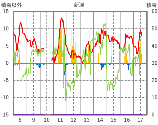| 日 | 時 | 気温 | 降水 | 風向/風速 | 日照 | 積雪 | 降雪 |