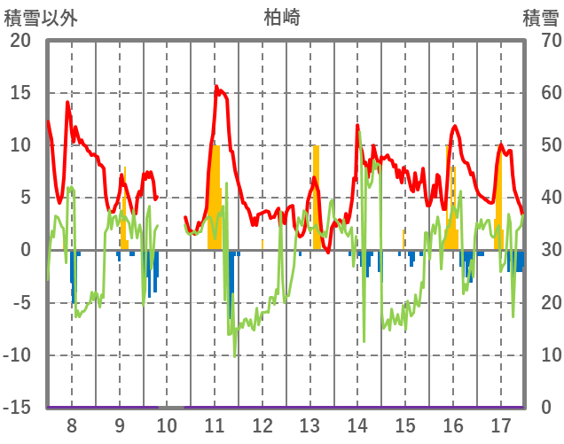 | 日 | 時 | 気温 | 降水 | 風向/風速 | 日照 | 積雪 | 降雪 |