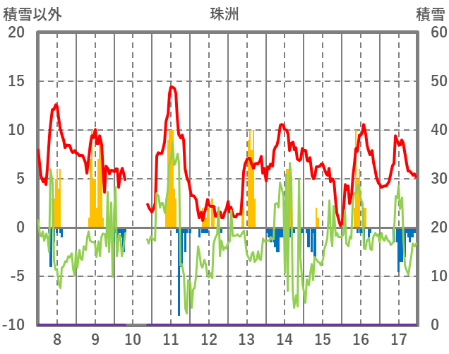 | 日 | 時 | 気温 | 降水 | 風向/風速 | 日照 | 積雪 | 降雪 |