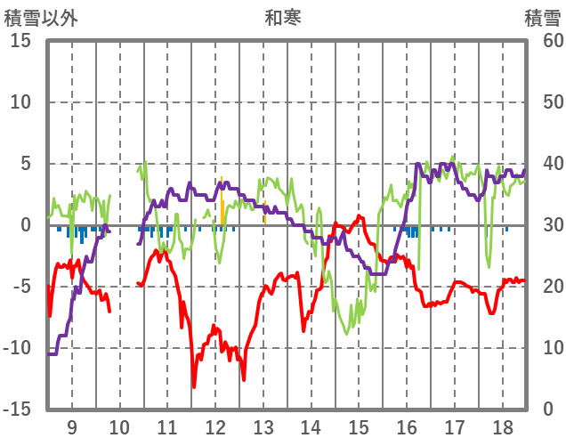 | 日 | 時 | 気温 | 降水 | 風向/風速 | 日照 | 積雪 | 降雪 |