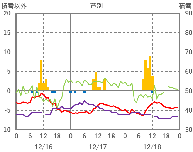 | 日 | 時 | 気温 | 降水 | 風向/風速 | 日照 | 積雪 | 降雪 |