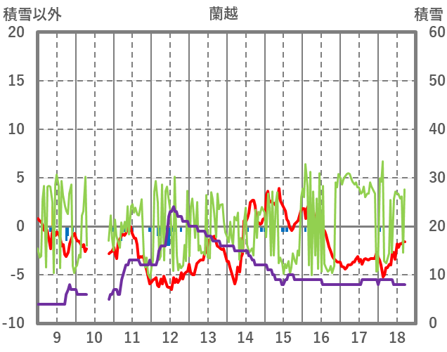| 日 | 時 | 気温 | 降水 | 風向/風速 | 日照 | 積雪 | 降雪 |
