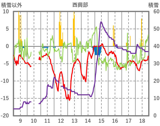 | 日 | 時 | 気温 | 降水 | 風向/風速 | 日照 | 積雪 | 降雪 |