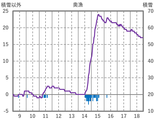 | 日 | 時 | 気温 | 降水 | 風向/風速 | 日照 | 積雪 | 降雪 |