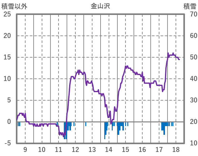 | 日 | 時 | 気温 | 降水 | 風向/風速 | 日照 | 積雪 | 降雪 |