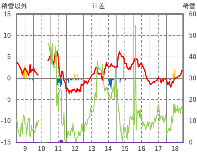 | 日 | 時 | 気温 | 降水 | 風向/風速 | 日照 | 積雪 | 降雪 |