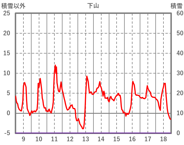 | 日 | 時 | 気温 | 降水 | 風向/風速 | 日照 | 積雪 | 降雪 |