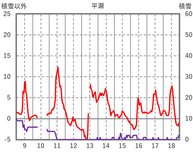 | 日 | 時 | 気温 | 降水 | 風向/風速 | 日照 | 積雪 | 降雪 |